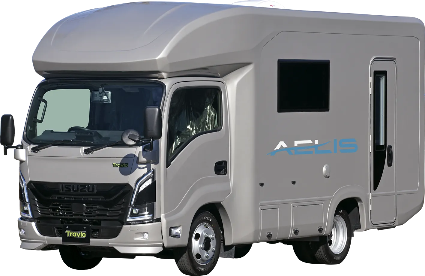 AELIS(エアリス)は、いすゞのキャンピングカー専用シャシ「Travio」をベースに、老舗ビルダー・セキソーボディとNTBが初めて共同開発したキャンピングカーです。