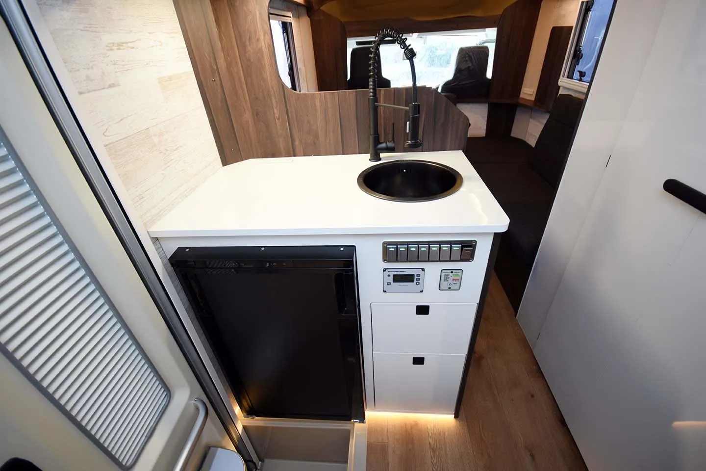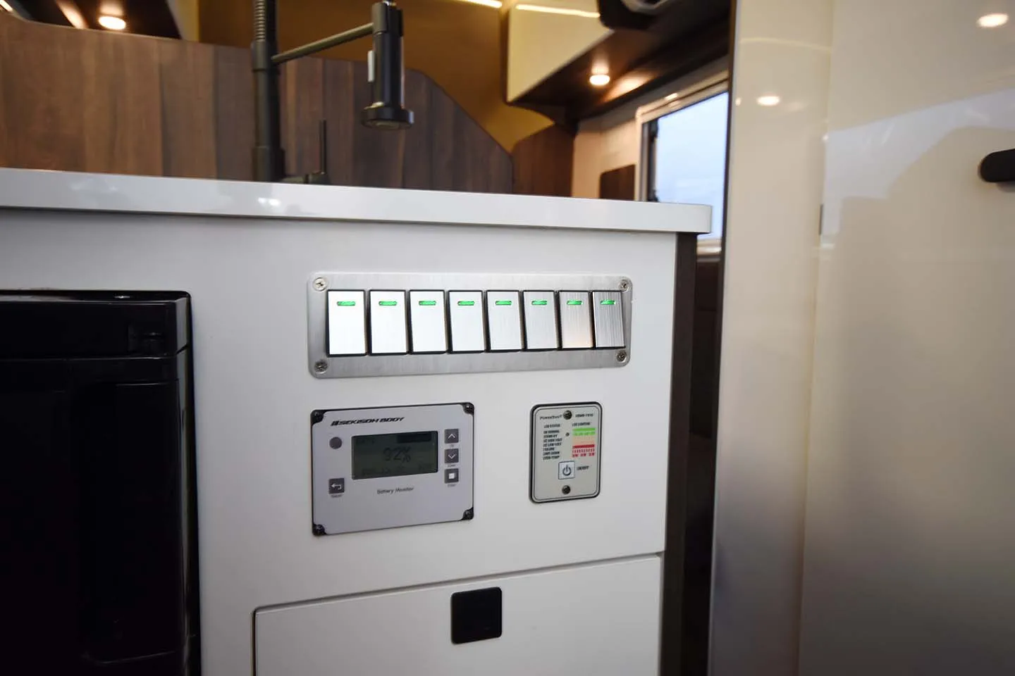 また、アルミボディによる軽量化は燃費性能や維持のしやすさにも貢献。家庭用エアコン、FFヒーター、リチウムイオンサブバッテリーなどの装備により、季節を問わず快適な車内環境を実現しています。