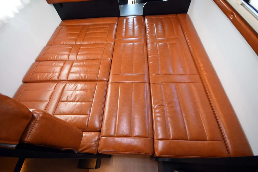 大容量リチウムイオンバッテリーにより、外部電源に頼らない快適な長期滞在を実現します。 - くつろぎを重視したベンチソファーダイネット