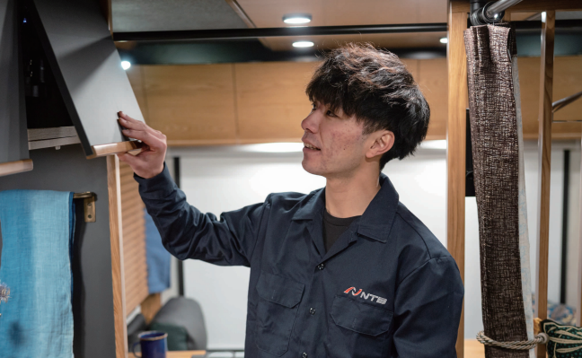 今回のGeoRoamで特に特徴的だったのは、床を板張りで仕上げたことです。どちらも一般販売モデルではまず採用しない、“コンセプトカーだからこそ実現できた仕様”で、プロジェクトとしての自由度の高さが表れています。僕自身はこれまで経験のない工程だったので、正直かなり苦戦しました。