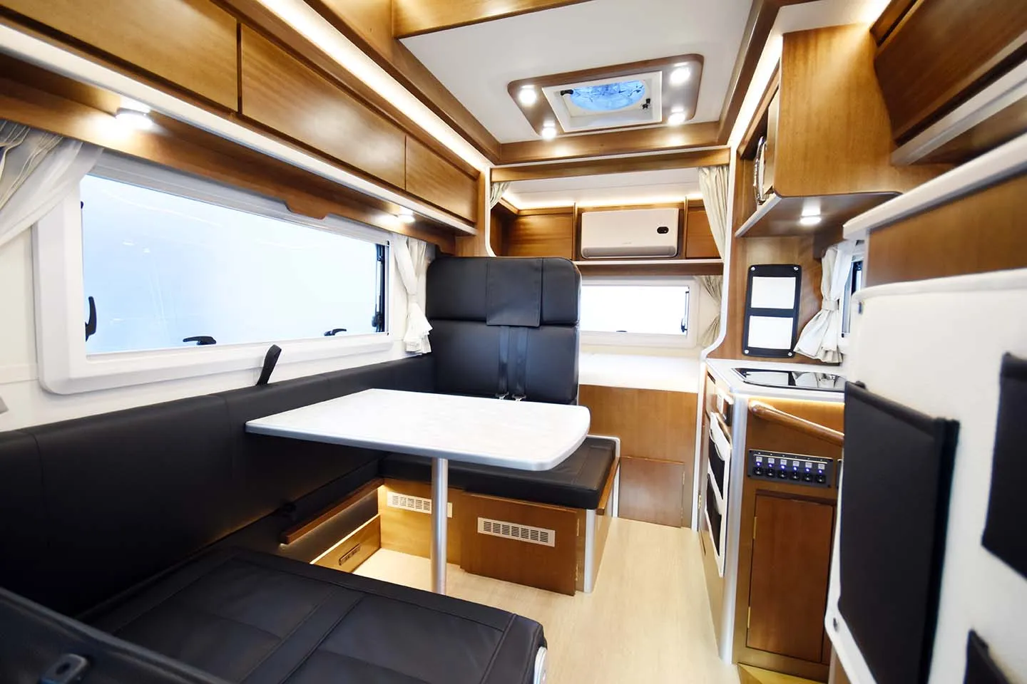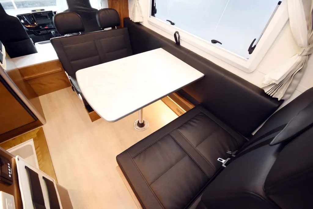 4名がゆったり過ごせるダイネットと、快適性を高めるレイアウト設計。 - 充実した電装・空調装備